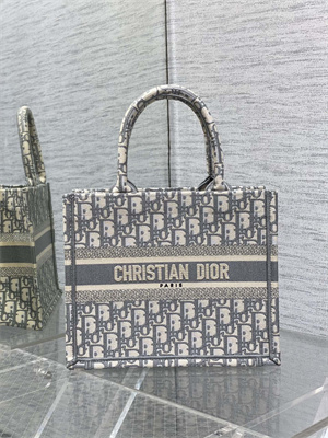 CD Small Book Tote Ecru and Grey Oblique Embroidery