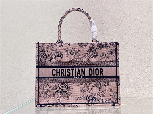 CD Medium Book Tote Jardin Botanique Embroidery Pink