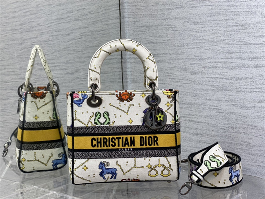 CD Medium Lady Di.or D-Lite Bag Toile de Jouy Zodiac Embroidery White Multicolor