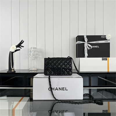 Cha.nel Mini Classic Flap Bag Lambskin Black Tone Metal Black 01116