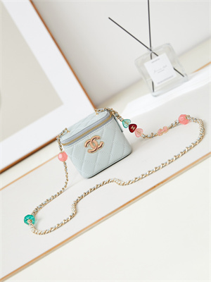 Ch*el vanity with chain grained calfskin& gold-tone metal lt blue ap4799