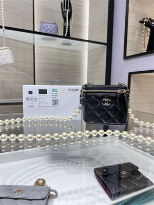Cha.nel Vanity Case With Chain Lambskin Gold Tone Metal Black AP2581