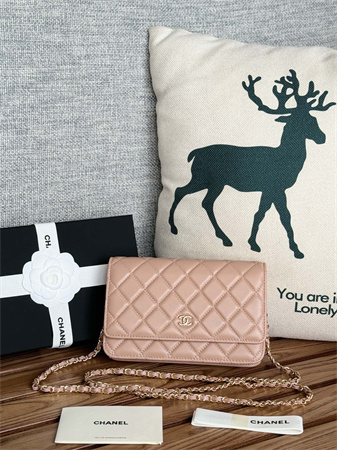 Ch*el wallet on chain lambskin gold tone metal pink ap0250