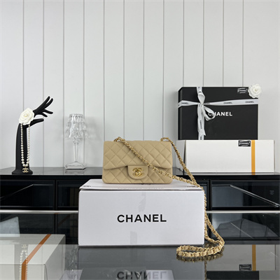 Cha.nel Mini Classic Flap Bag Grained Calfskin Gold Tone Metal Beige 01116
