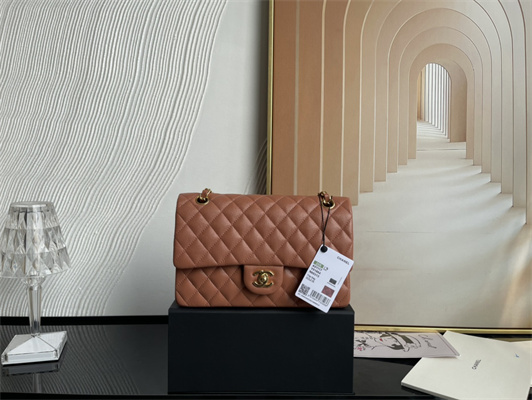 Cha.nel Medium Classic Flap Bag Grained Calfskin Gold Tone Metal Caramel 01112