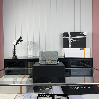 Cha.nel Mini Classic Flap Bag Grained Calfskin Gold Tone Metal Grey 01116