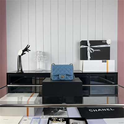 cha.nel S*per mini classic flap bag grained calfskin gold tone metal blue 01115