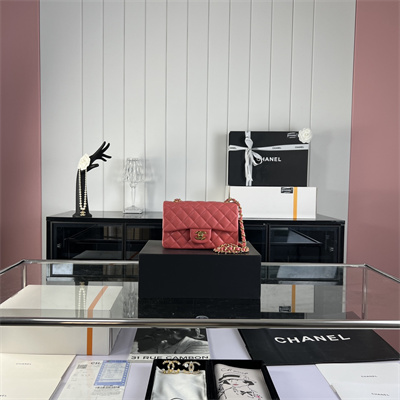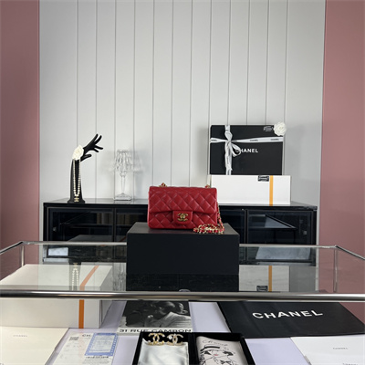 Cha.nel Mini Classic Flap Bag Lambskin Gold Tone Metal Red 01116