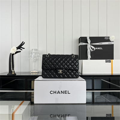 Cha.nel Medium Classic Flap Bag Lambskin Silver Tone Metal Black 01112