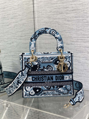 CD Medium Lady D-Lite Bag Embroidery White&Blue