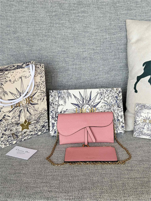 CD Long Saddle Wallet With Chain Grained Calfskin Pink