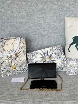 CD Long Saddle Wallet With Chain Grained Calfskin Black