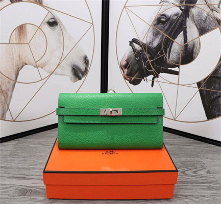 Her.mes Kelly Classic Wallet Calfskin Bambou Color Silver tone Metal