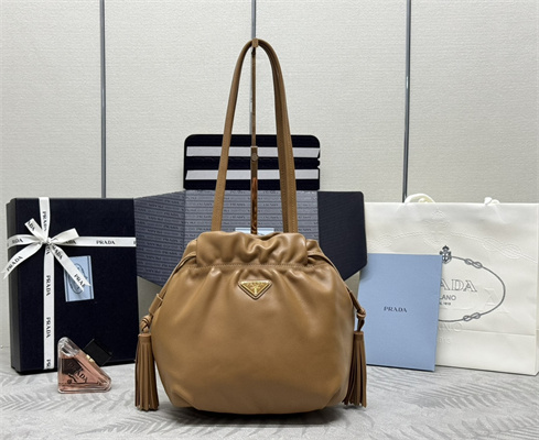 Pra*a nappa leather shoulder bag caramel color 1bg541