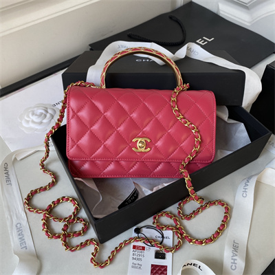 Cha.nel Wallet On Chain With Top Handle Lambskin Gold Tone Metal Pink AP3574