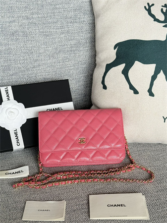 Ch*el wallet on chain grained calfskin gold tone metal pink ap0250