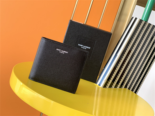 Y.S.L PARIS EAST/WEST WALLET IN GRAIN DE POUDRE EMBOSSED LEATHER Black Color