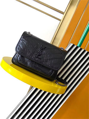 Y.S.L NIKI BABY In Vintage Leather All Black Color
