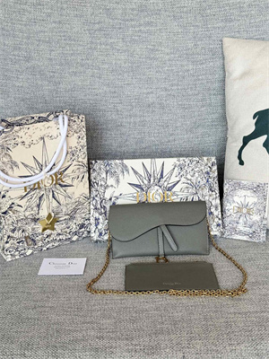 CD Long Saddle Wallet With Chain Grained Calfskin Grey