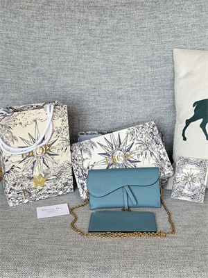 CD Long Saddle Wallet With Chain Grained Calfskin Blue