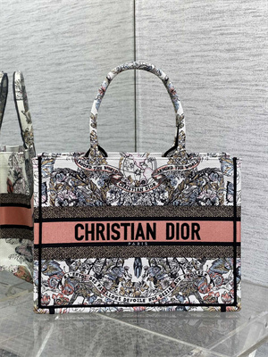 CD Medium Book Tote Butterfly Around The World Embroidery White and Pastel Pink